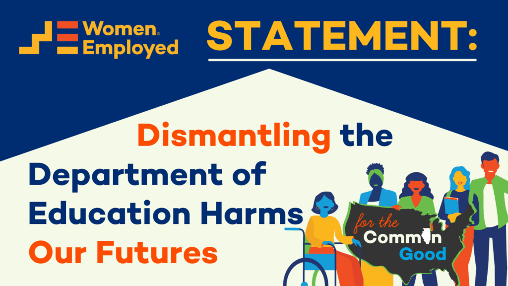 This action also subverts congressional authority. The executive branch has made these changes unilaterally, defying both law and precedent. Women Employed calls on Congress to fulfill its responsibilities to students of all ages and exercise their legal authority to ensure that all students are protected and supported in their educational endeavors. It is both your responsibility and your duty to hold the president accountable and ensure that the Department of Education’s important work continues uninterrupted. Our futures all depend upon it.